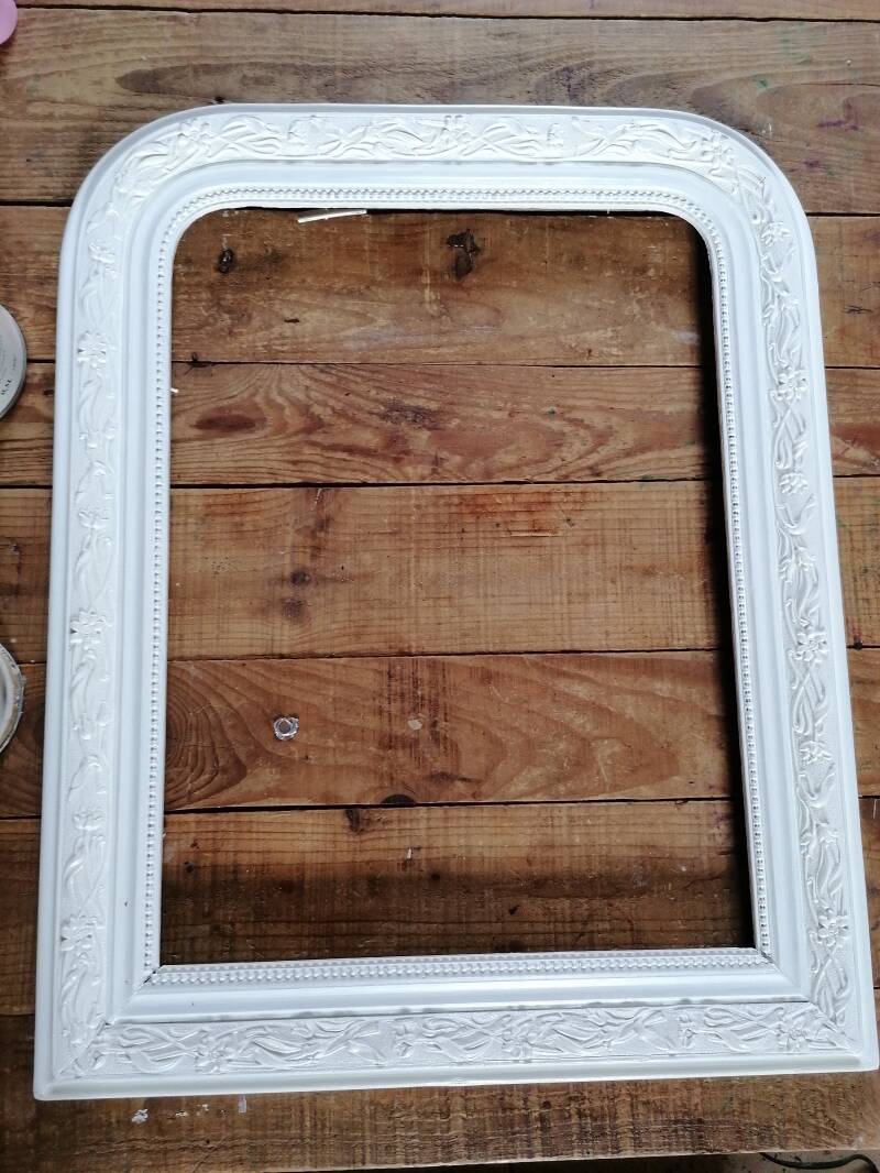 La première chose à faire quand on rénove un miroir ancien est de retirer le miroir afin de pouvoir poncer, réparer, peindre ... le cadre sans risquer de l'abîmer.