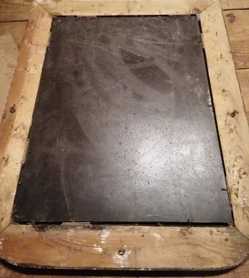 Retournez votre miroir et regardez au dos les fixations qui le maintiennent au cadre. Vous devez normalement trouver une planche en bois (ou cartonnée) fixée par des clous comme ci-dessus 👆