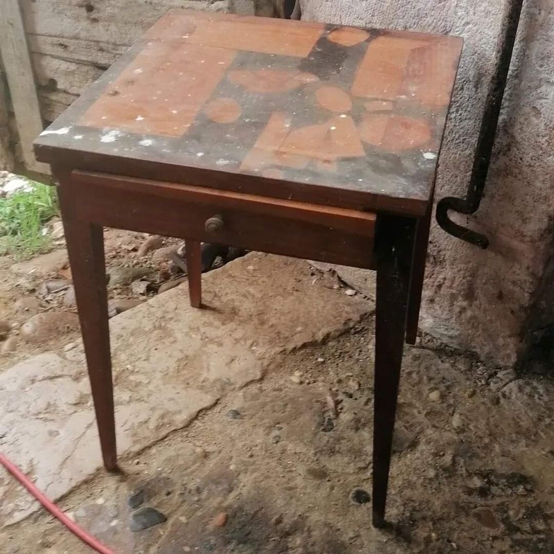 Après un bon décapage, voici cette table de chevet parée d'une douce et élégante peinture couleur " crème".